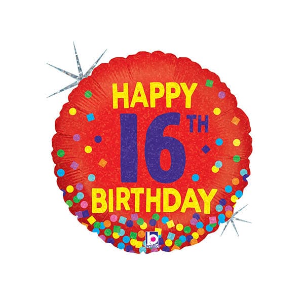 Make the 16th birthday a memorable one and add this bright red and colorful confetti balloon with “Happy 16th Birthday” to party décor! Or create a balloon bouquet by adding solid color balloons for unique look. Includes one “Happy 16th Birthday” balloon that is shipped flat.