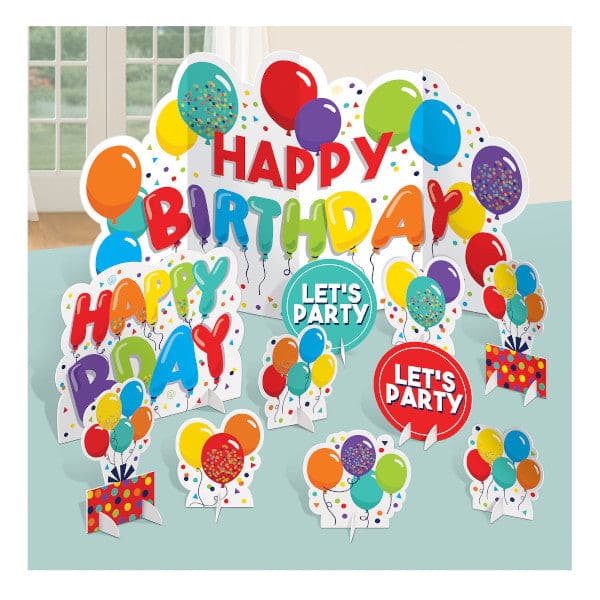 Birthday Celebration Table Decoration Contains: 1 Background, 13 9/10" and 10 Centerpieces, 5 3/10" - 7 4/5".