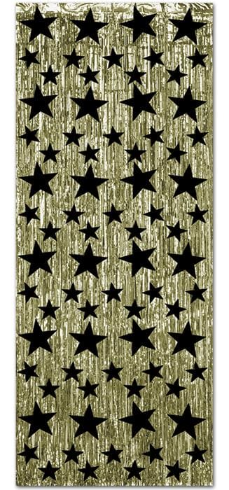 Set the perfect scene at a New Years or Hollywood themed celebration with our Black and Gold Metallic Curtain for a fun and festive look. This Black amp Gold Metallic Curtain measures 8ft x 3ft and contains two sections for custom positioning.