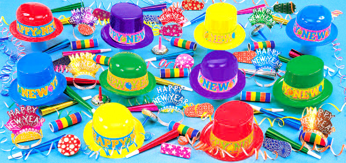 Have a fantastic New Year’s Eve Bash and hand out party guests these fun and festive hats and tiaras. This kit has everything you need to make the countdown to midnight extravagant! Dayglo Band Party Kit includes: 25 Plastic Top Hats and Derbies with NEON Happy New Year Band, 25 Happy New Year Glitter Tiaras, 25 Assorted 9” Foil Horns, 25 Deluxe Metal Noisemakers, 200 Flame Resistant Serpentine Throws.