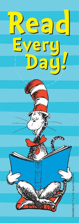 Hand out these Cat in the Hat “Read Every Day” Bookmarks for kids to encourage reading whether they are at school, home or traveling. These motivational bookmarks come in bright colors and designed with a notch to hook over the page in any book. A pack includes 36 bookmarks measuring 2in x 6in.