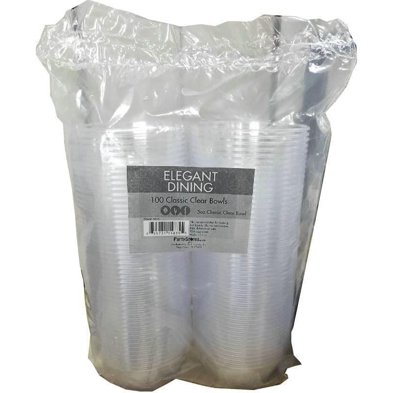 Plastic bowls offer the convenience of plastic along with the high-quality look of standard dishware. Serve your favorite snacks, small portions of salad, ice cream, fruit salads and more from these clear plastic bowls and that can hold up to 5oz. The pack includes 100 plastic bowls.