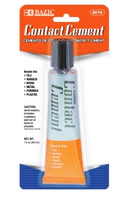 This 1fl oz contact cement adhesive is flexible acrylic adhesive for both porous and non-porous surfaces. Super strong that forms permanent bonds for variety of applications. Latex free. Great for home improvement, repairing and craft work.