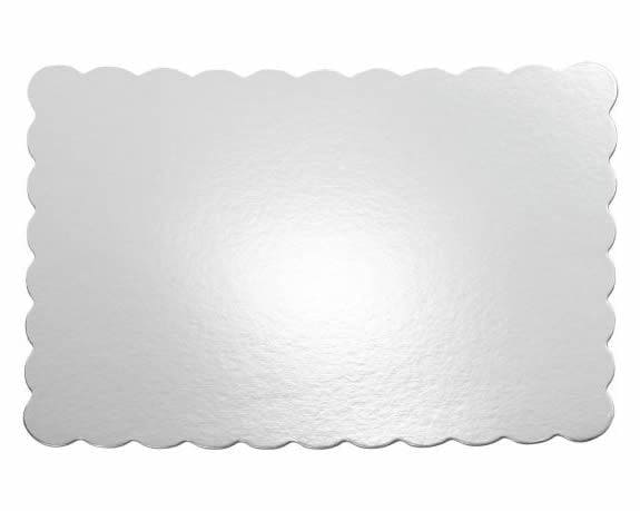Our silver corrugated scalloped cake boards provide an elegant and stable foundation for cakes This 14x21in silver scalloped cake board is made of corrugated cardboard that is strong and durable to support and carry even the heaviest and most cumbersome cakes One silver scalloped cake board that measures 14in x 21in to fit perfectly into a cake box