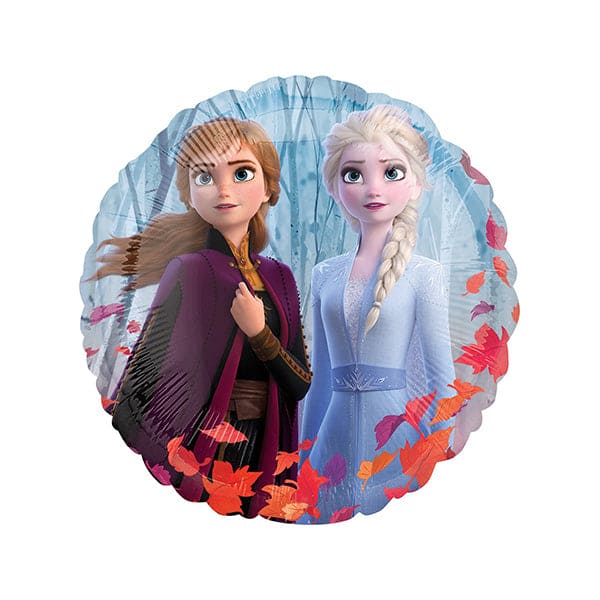 Create a Frozen 2 party scene and include this pretty mylar balloon featuring Anna and Elsa with colorful autumnal foliage. Each Disney Frozen metallic balloon package includes one 18in metallic balloon. Please note Balloon arrives uninflated.