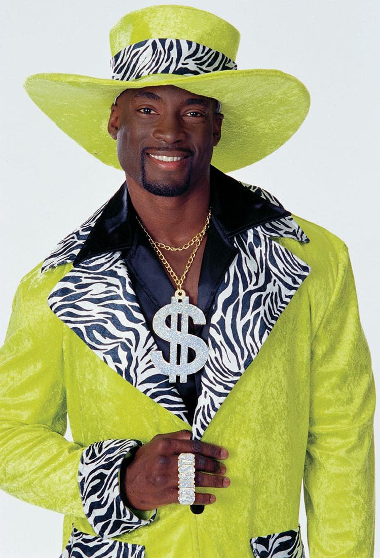 Add some big bling to any Pimp costume for this Halloween. This Big sparkling dollar sign on gold color chain comes one per package.