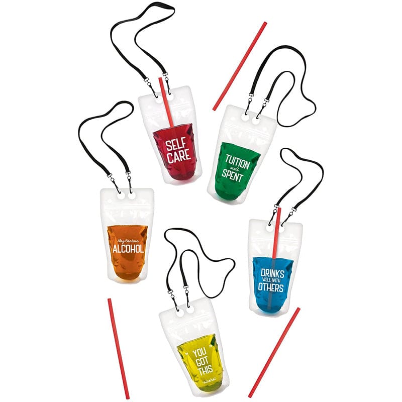 Festive drink pouch necklaces that have different grad phrases that will add fun to graduation celebration parties. Includes 10 Pouches with lanyard, (each pouch holds up to 16 ounces of your favorite beverage), 10 Reusable Plastic Straws and 1 Cleaning Brush.