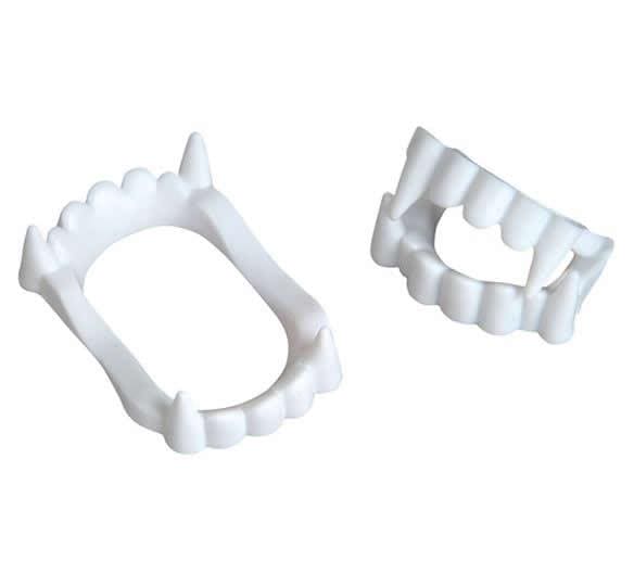 Fill your Halloween treat bags and sink your teeth into this pair of vampire fangs that make great Halloween party favors The Halloween white fang favors are sold individually and measure 2in. Intended for children.