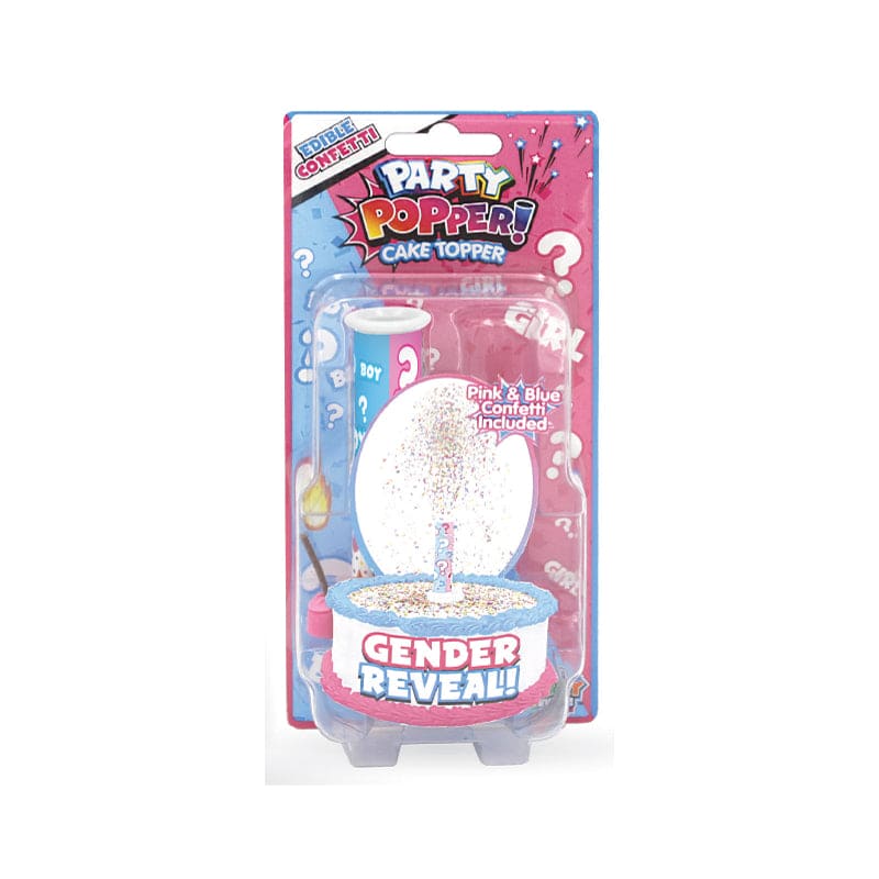 This makes every gender reveal party cake exciting! Works for any size cake and is easy to use. Light the wick and the popper will launch covering the cake with edible confetti. Includes Pink and Blue edible confetti.