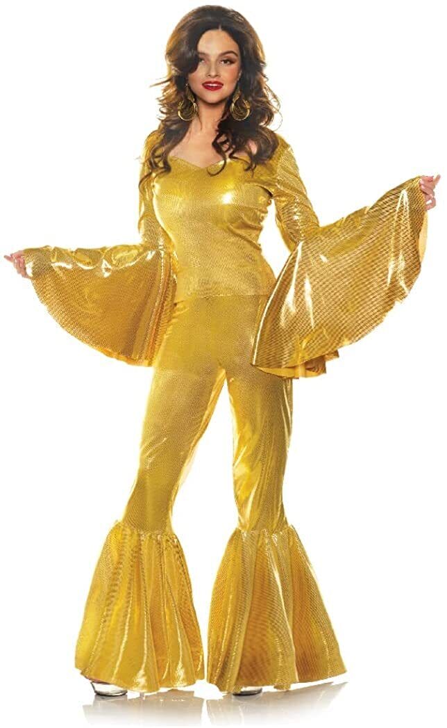 Gold 70's Disco Diva Bell Bottom Adult Costume