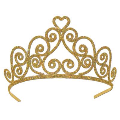 This Gold Glittered Metal Tiara is a great and fun accessory for a multitude of Halloween costumes or wear at a princess themed birthday party The Glittered Tiara is made our of metal and covered with gold glitter The Glittered Metal Tiara includes two attachable combs for a comfortable and secure fit