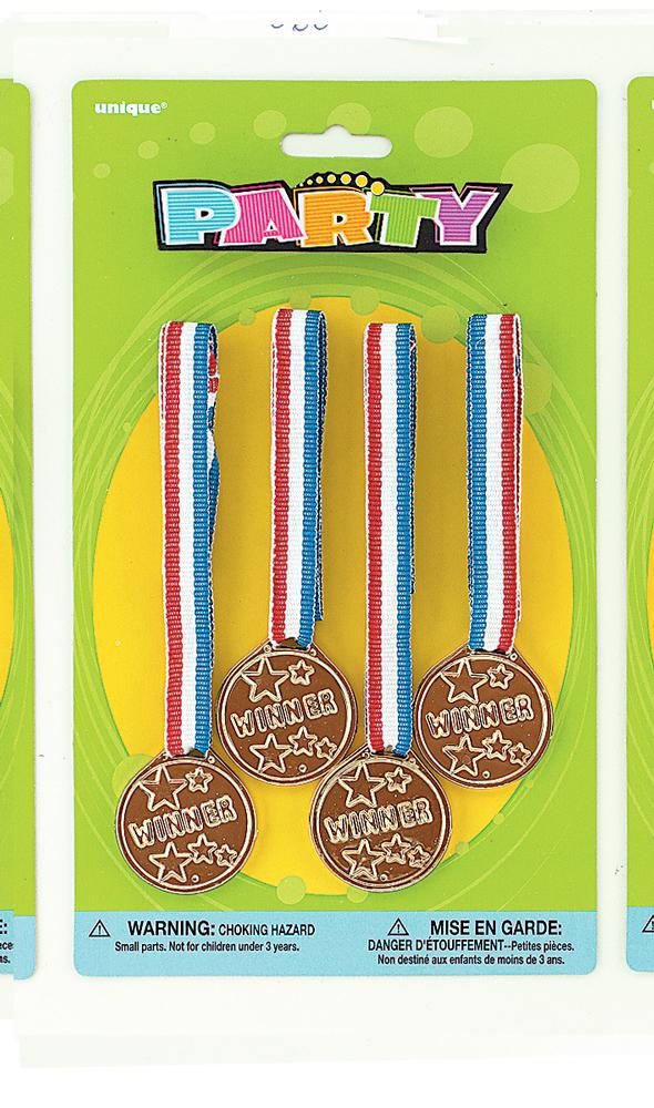 Gold Medals are great as party favors or to give out as prizes The package includes 4 Gold Medals on white red and blue ribbon