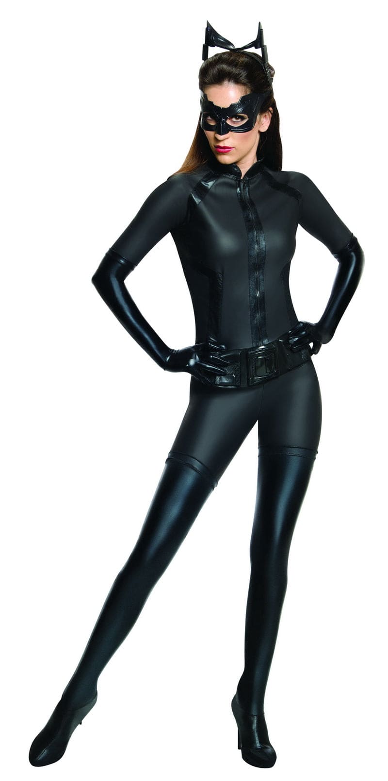 For Halloween or any masquerade costume party dress as Catwoman from the Dark Knight Trilogy by wearing this Grand Heritage Catwoman Costume! Our Grand Heritage Catwoman Costume is her all black jumpsuit a belt a pair of gloves, boot tops the iconic eye mask and headpiece.