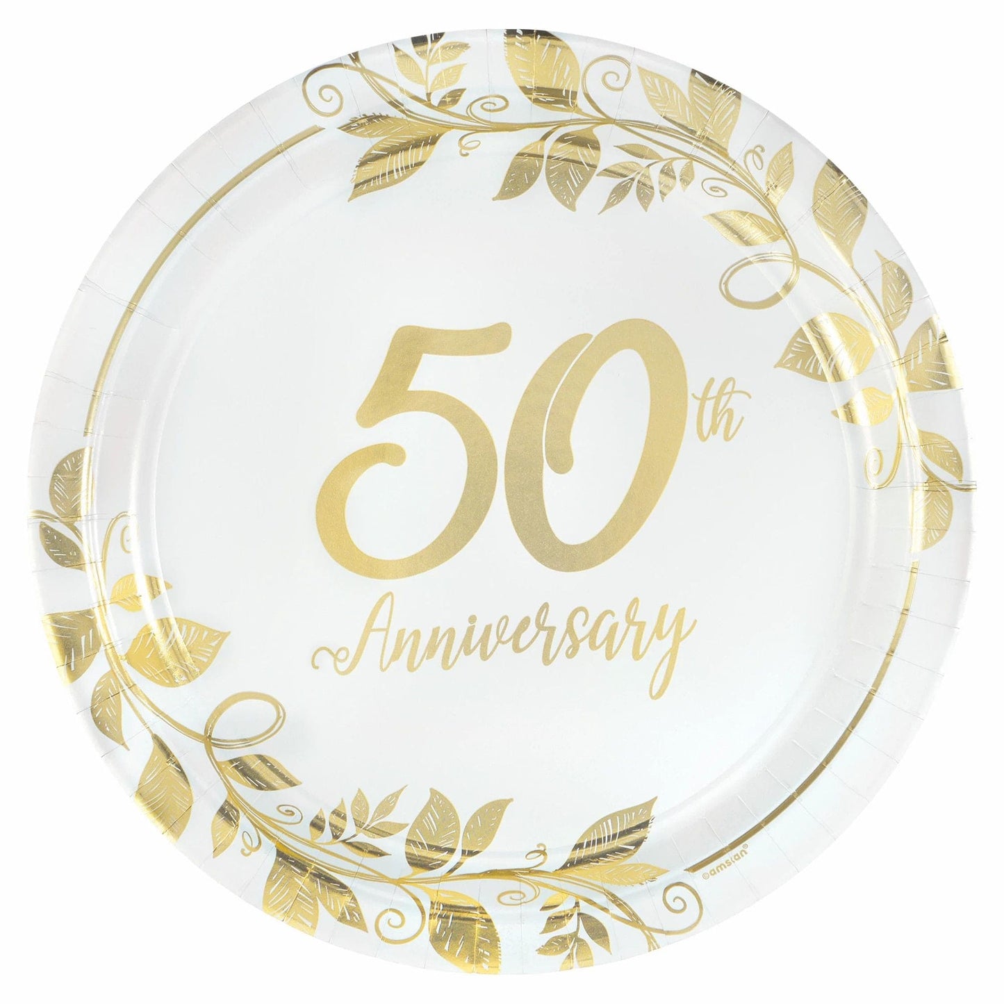 Happy 50th Anniversary 7in Round Metallic Lunch Plates 8 Ct