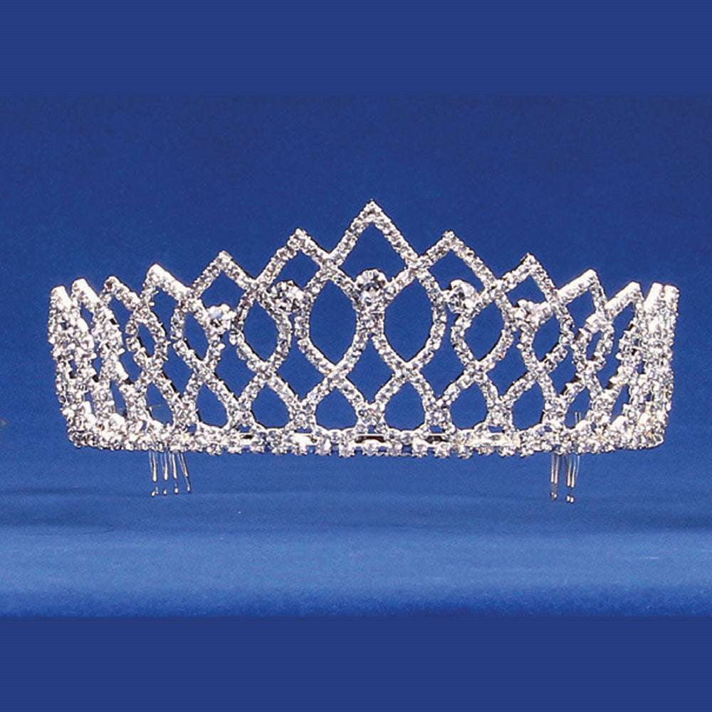 Inspired by America's Princess this beautiful and elegant tiara is made of stunning silver like details and rinestones in multiple patterns to give high drama to any prom, homecoming, wedding or major event. side combs allow for perfect fit and hold to walk around with grace. Tiara measures 2.75inchs in height