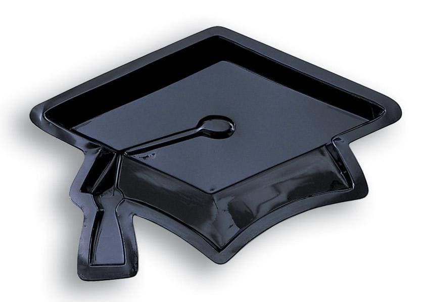 Celebrate the new graduate in style with our Mortarboard Plastic 11in Serving Tray, which is die-cut in the shape of a graduation cap. PLEASE NOTE: The plastic tray IS NOT heat-resistant. Please do not place hot foods, or place in microwave or dishwasher.