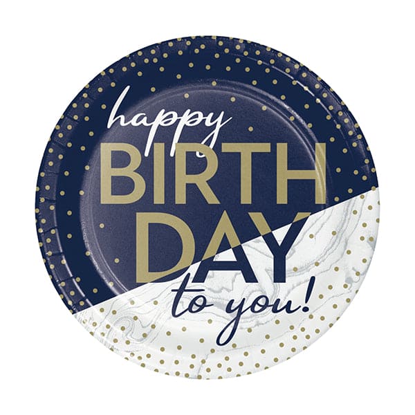 Navy & Gold Milestone 7in Round Luncheon Paper Plates 8ct