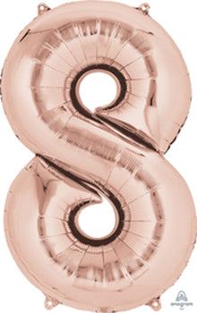 Number balloons are great for many occasions such as Birthday Parties, Anniversaries or other festive occasions. This shiny rose gold color number "8" balloon measures 40 inches and it can be paired with other number balloons which are sold separately to create a specific year or other meaningful number combination. One Number "8" Rose Gold Mylar Balloon measuring 40 inches per package. Balloon ships flat.