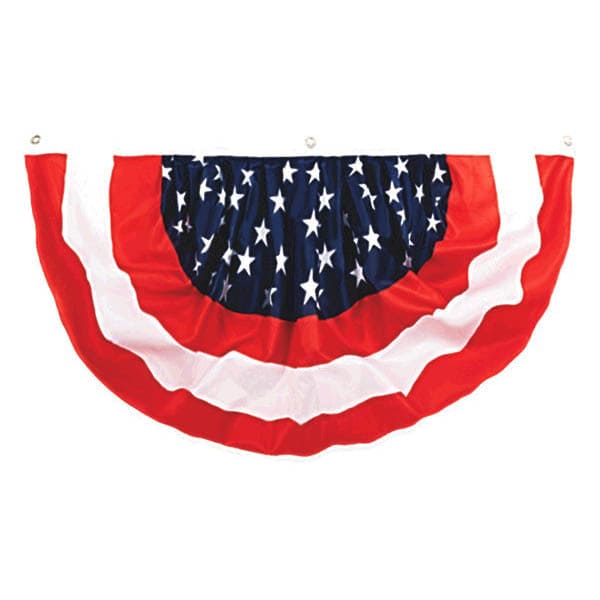 Set the scene for a festive patriotic celebration with our red, white, and blue Nylon Bunting. This (medium-sized) 36in. bunting can be hanged indoors or outdoors and features blue, white, and red in a semi-circle of fabric. One bunting per pack.