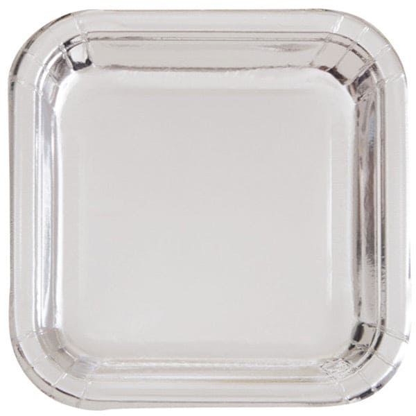 Shiny Silver Foil Square 9in Dinner Plates 8ct