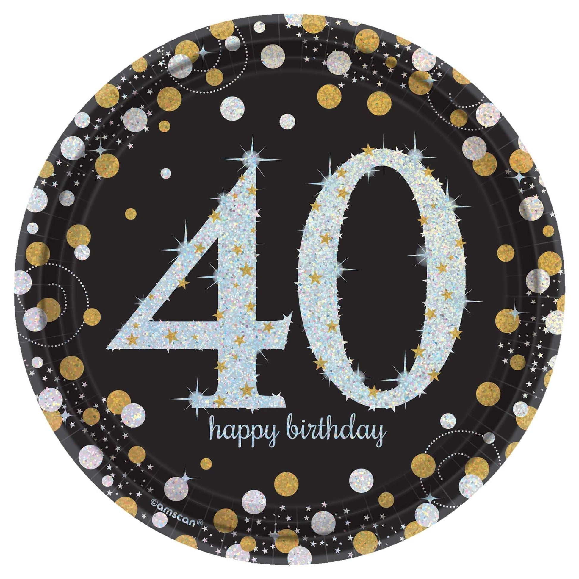 8 Sparkling Celebration 40th Birthday 7in Luncheon Paper Plates in a package.