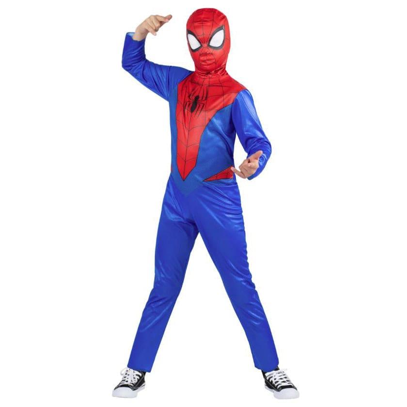 Spider Man Kids Costume is cut from poly jersey and features a printed design on the front torso and shoulder area. Costume also includes a fabric Spider-Man mask to conceal your kid’s secret identity.