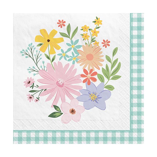 The bright and colorful Springtime Blooms tableware will easily complement any table setting for an upcoming occasion. These soft yet strong beverage/cocktail paper napkins ensure accidental spills and are great for serving beverages and appetizers. The pack includes 16 napkins that are 5” x 5” when folded.