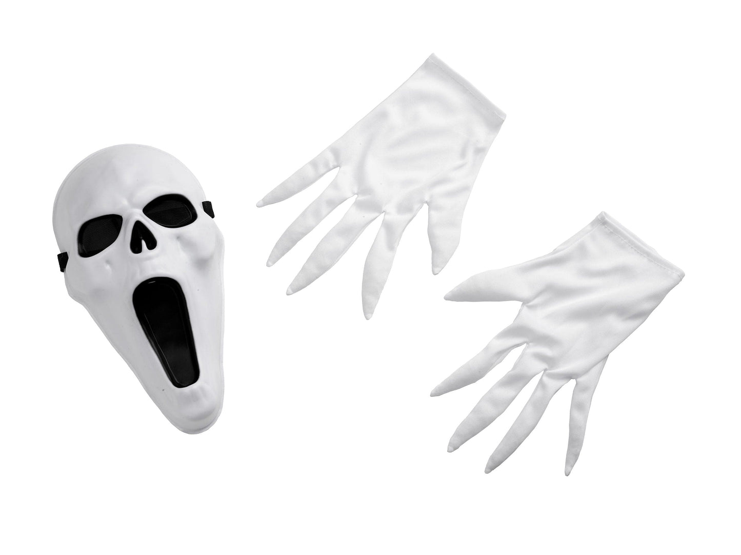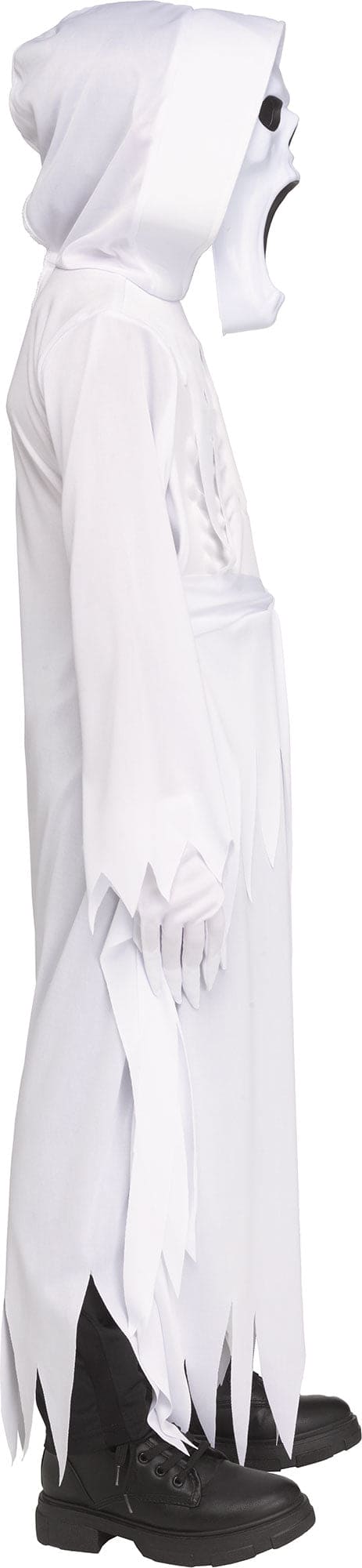 Includes: Hooded White Fused EVA Chest Robe with Belt. Long Finger Gloves and Mask. Child Size M 8/10 or L 12/14.