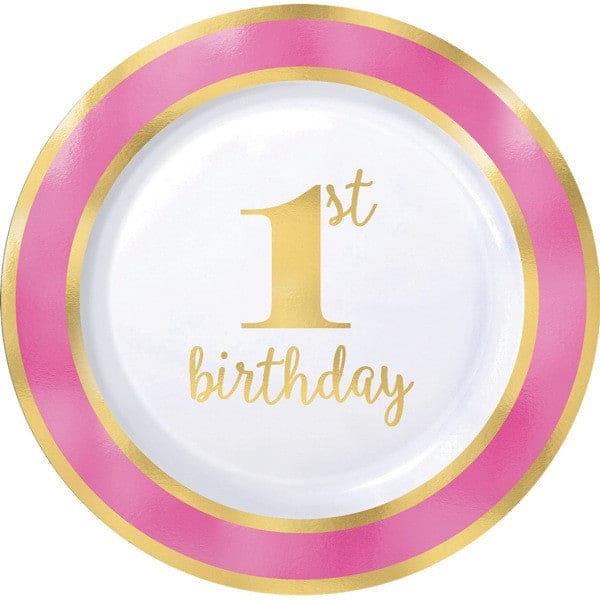 1st Birthday Premium Pink 10.25in Round Banquet Plastic Plates