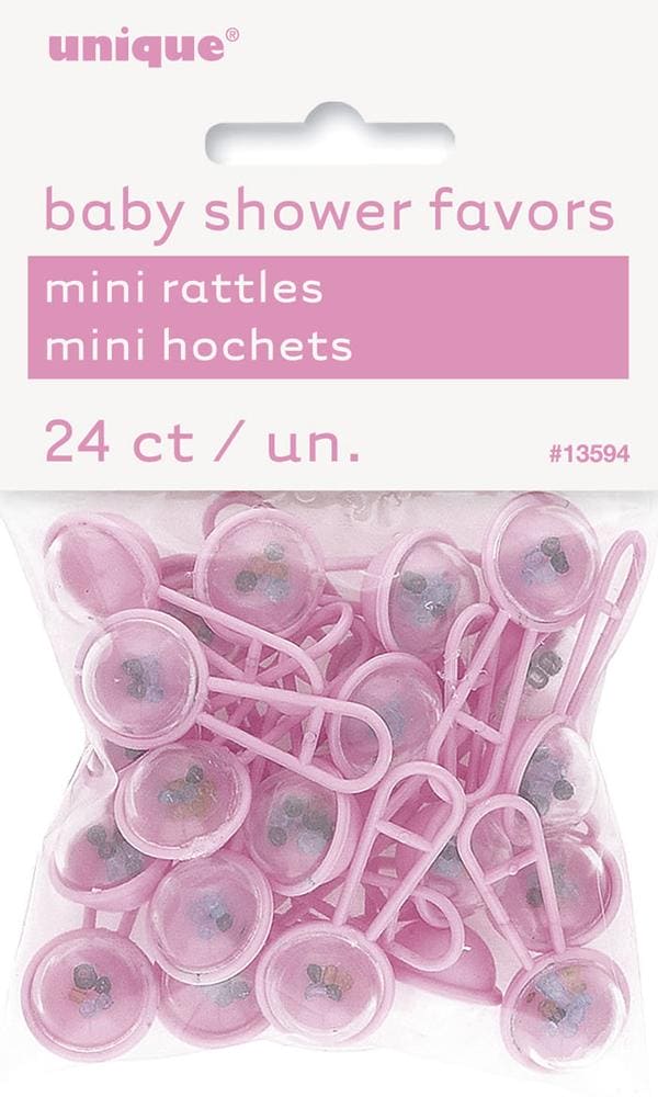 These Pink Mini Rattles are great for decorating favors baby shower game prizes and for other creative uses for that special occasion. The bag includes 24 Pink Mini Rattles.