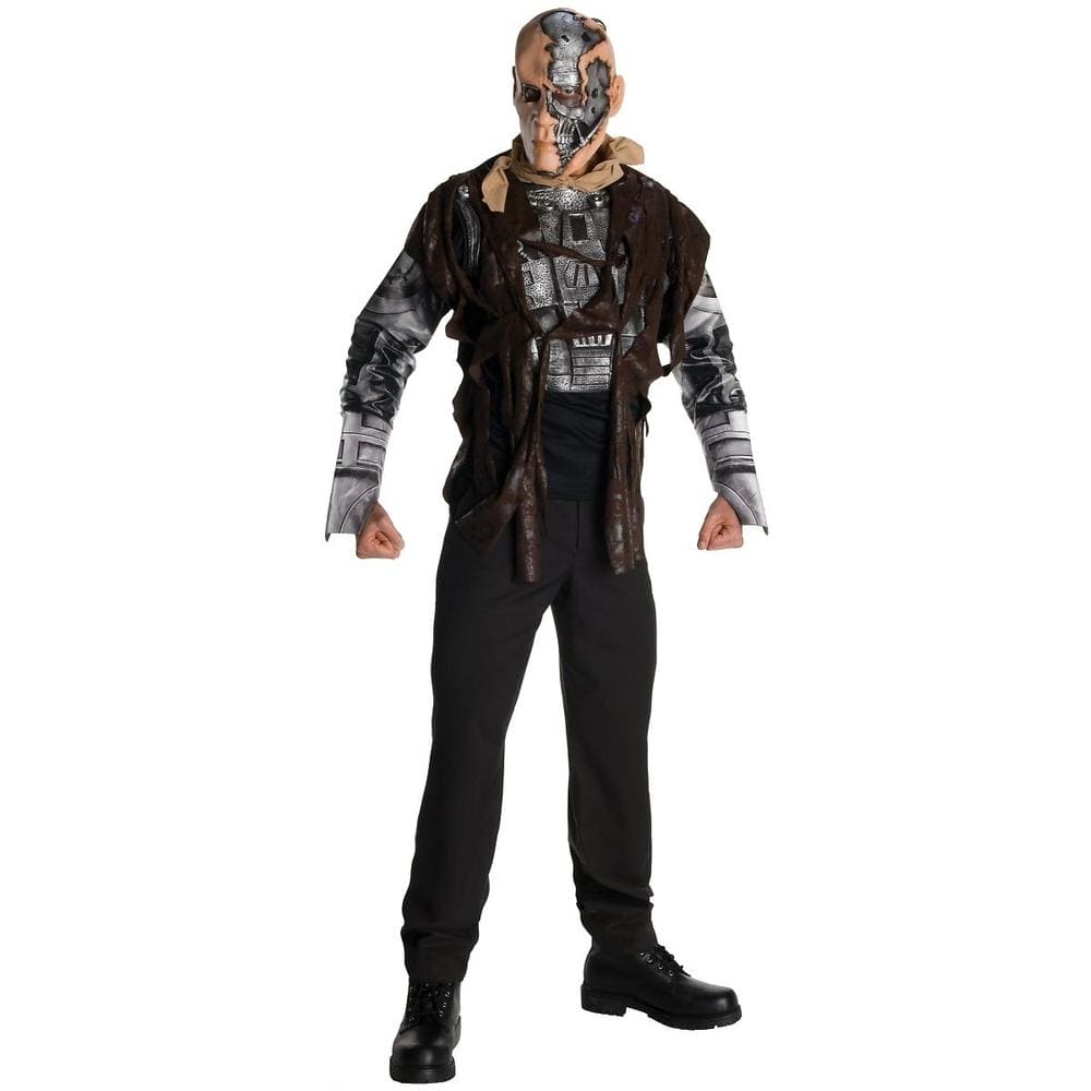 Transform yourself into a cyborg assassin with this Terminator costume which is perfect for Halloween and costume parties The Deluxe Terminator Costume includes shirt with molded chest piece and mask