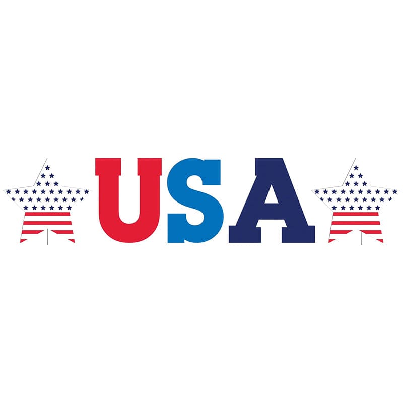 Create an eye-catching presence in your lawn or outdoor event area and show your patriotic spirit with these USA and stars yard signs that come with sturdy metal stakes. Great for the 4th of July celebration or a sporting event. The signs measure 20.5in x 22in and are made of corrugated plastic.