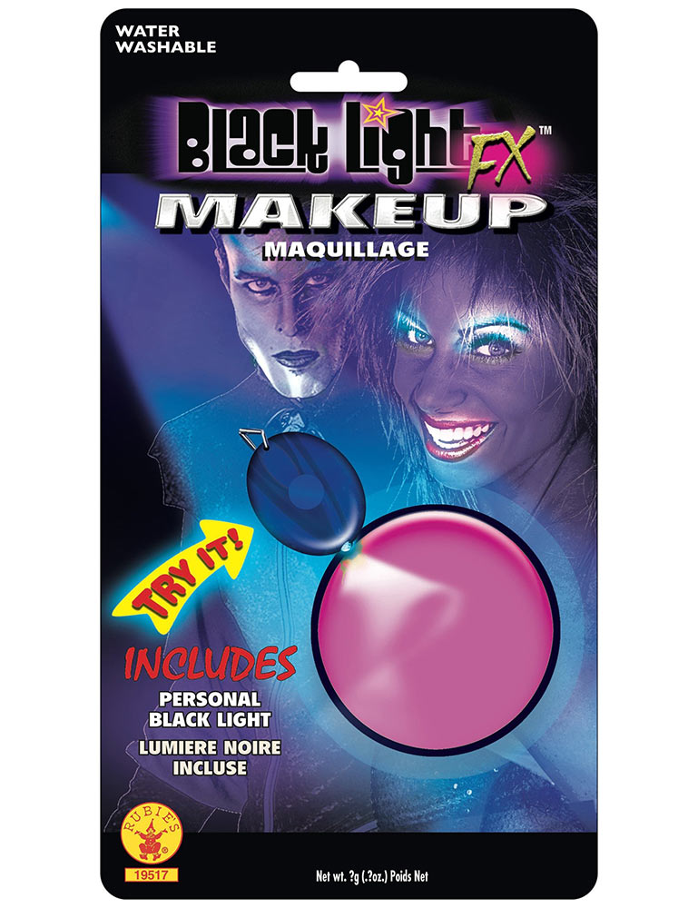 Water washable make up that will glow under black light. Includes Pink Make up and personal black light.