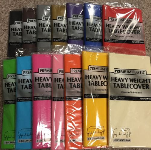 Includes one White Heavy Weight Plastic Table Cover.