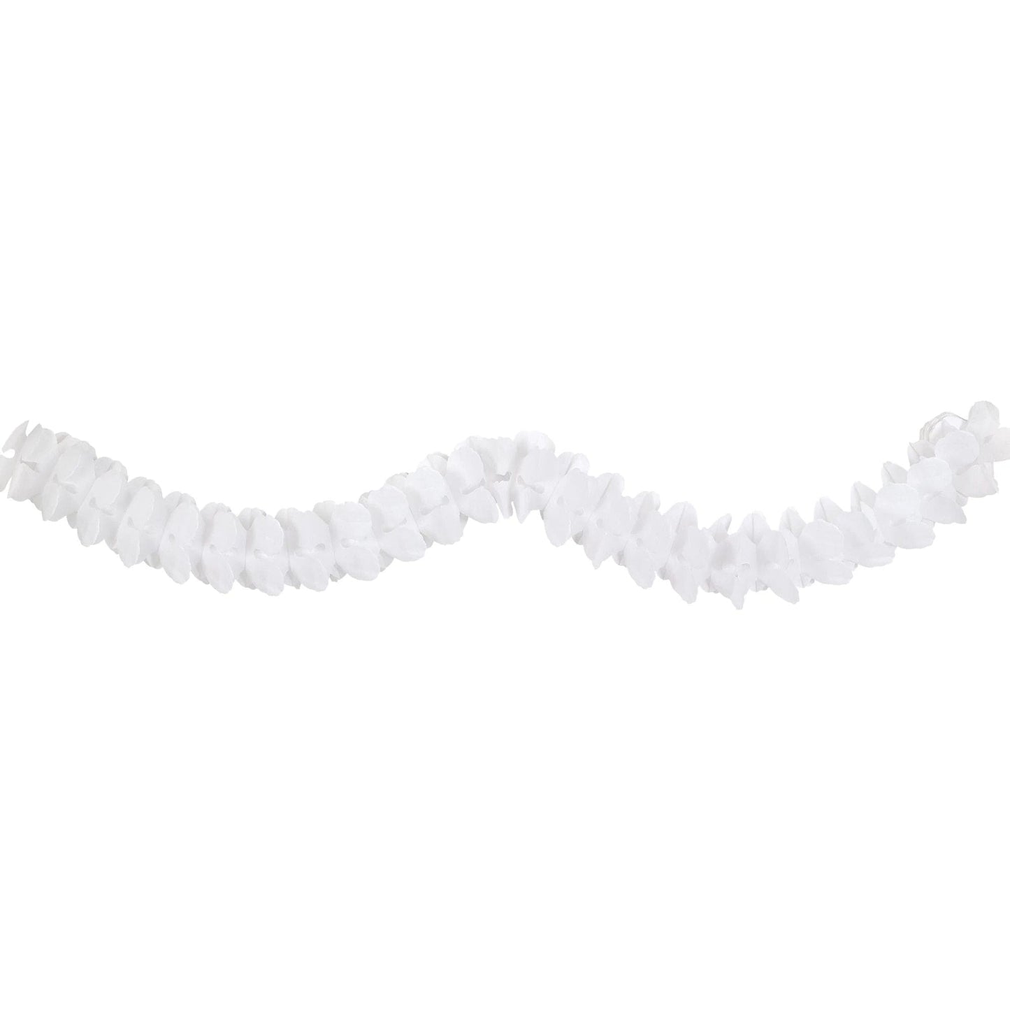 Wrap our Bright White Paper Garland around banisters or hang across walls to instantly bring a fun mood to any party Mix and match garland colors for a custom look Package includes 1 string of paper garland measuring 12ft long